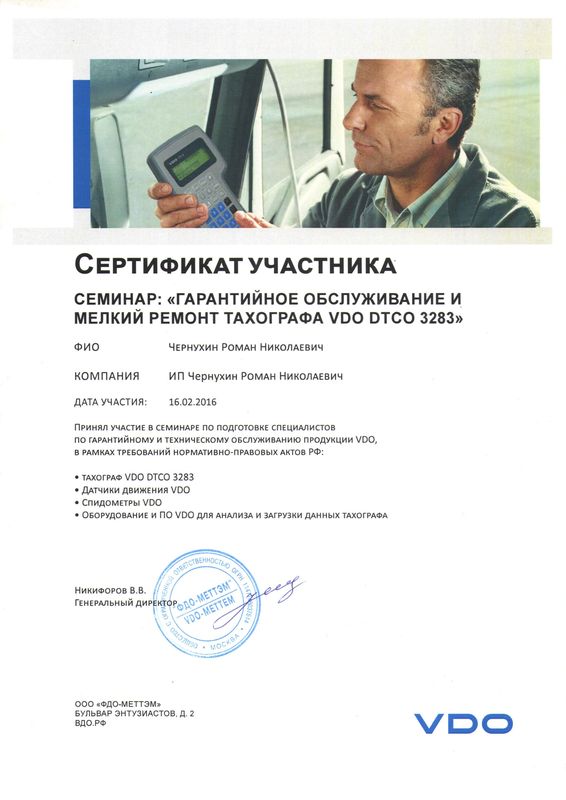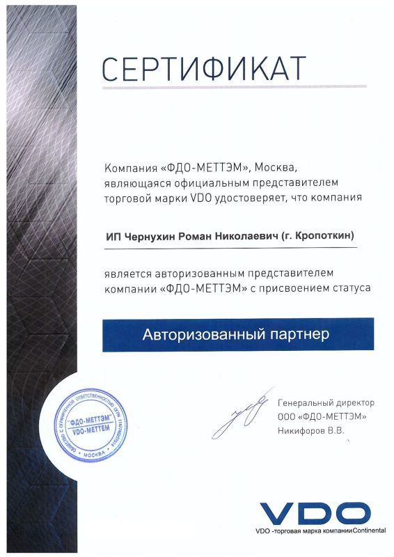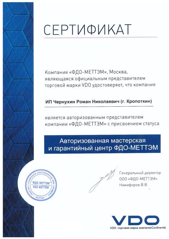 Мы являемся гарантийной мастерской компании VDO, о чём имеется соответствующая информация на официальном сайте производителя.