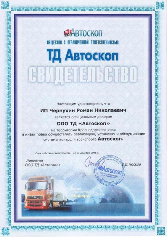 Наша компания является официальным дилером компании ООО "Автоскоп" осуществляющей изготовление приборов, разработку програмного обеспечения и техническую поддержку систем мониторинга подвижных объектов (спутниковой навигации).